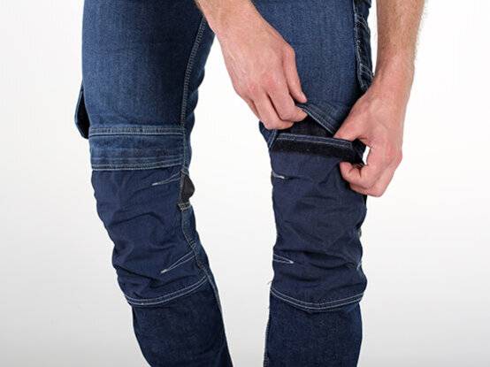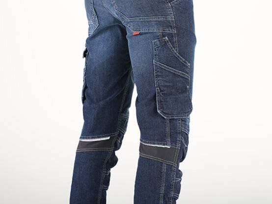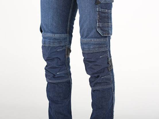 Onze denim werkbroeken zijn gemaakt van een zware kwaliteit katoen van maar liefst 407 gram/m2, 66% daarvan is gerecycled en dus ook nog milieuvriendelijk. Voor voldoende stevigheid is er 3% polyester toegevoegd en het extra draagcomfort komt voor rekening van 1% lycra. Al met al is deze samenstelling goed ademend, de broeken zijn niet te dik en dus ook niet te warm. Voor wie behoefte heeft aan extra stevigheid, is de jeanswerkbroek ook met kniestukken leverbaar.