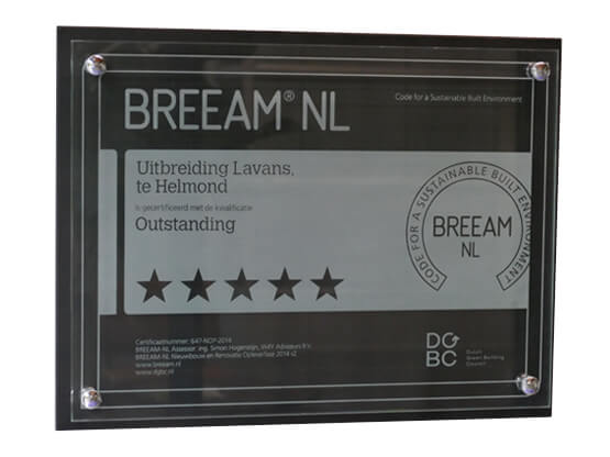 Een BREEAM-NL Outstanding certificaat is de hoogst haalbare classificering in Nederland. Daarmee behoort onze hoofdlocatie tot de 1% gebouwenvoorraad die deze topkwalificatie als titel mag dragen in Nederland. Trotser kun je ons niet maken!