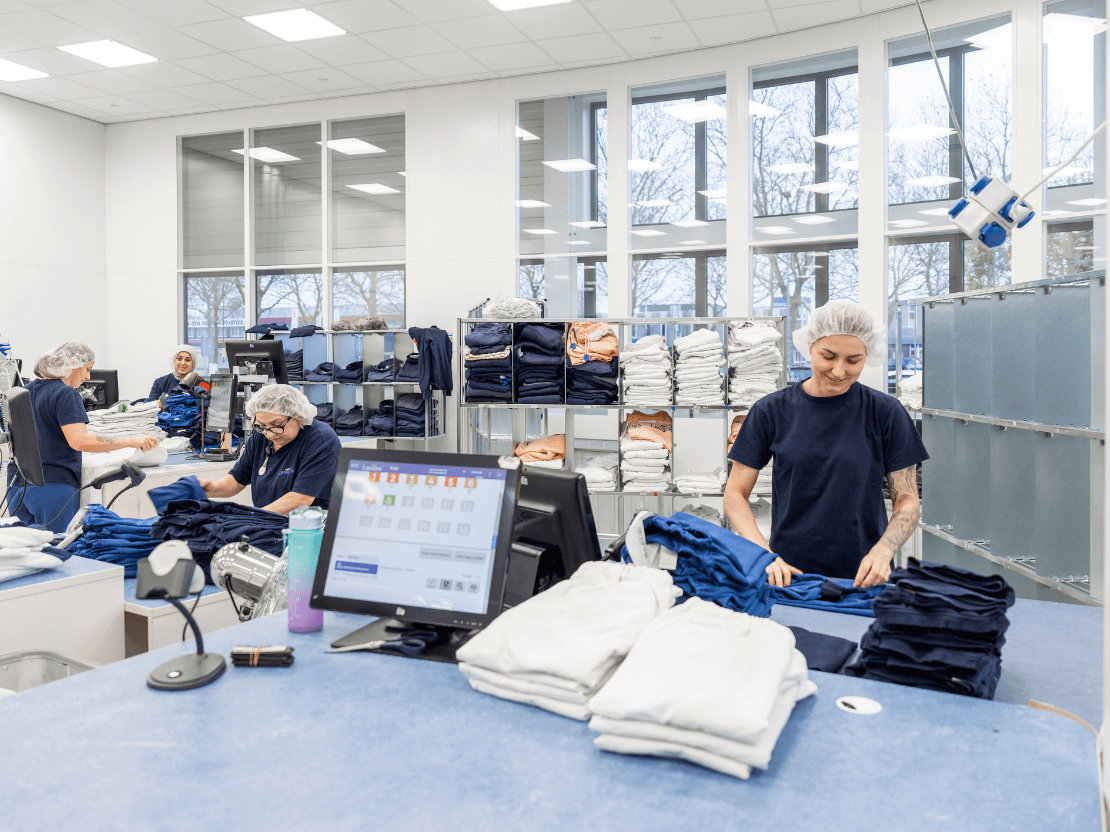 - Slimme warmteterugwinningstechnieken: op bijna alle drogers, uit afvalwater, mangellucht en vacuümbuizen op het dak voor verwarming waswater.