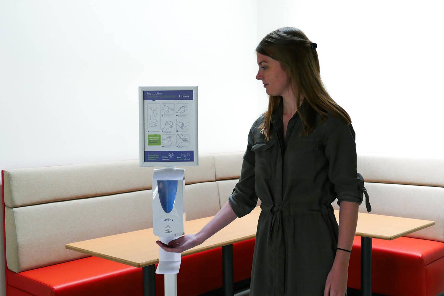 Het coronavirus houdt ons in de greep. Hoewel de maatregelen beetje bij beetje versoepelen, blijven de basisregels van kracht. Zeker nu steeds meer bedrijvigheid weer op gang komt, blijft handen wassen of desinfecteren en 1,5 meter afstand houden noodzakelijk. Als bedrijf dien je te faciliteren in hygiënemiddelen en waarschuwingsmaterialen.