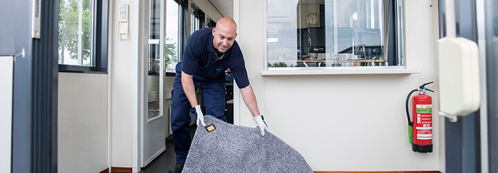 Onze servicemedewerkers proberen bij iedere klant te onthouden waar de matten liggen, zodat ze zonder de klant te storen de matten kunnen verwisselen. Volgens servicemedewerker Antonie ligt de plaats van de mat vaak voor de hand: “Matten liggen vrijwel altijd bij een deur of doorgang. De meeste klanten hebben een droogloopmat bij de hoofdingang liggen en soms nog een schoonloopmat tussen de productiedeur en het kantoor.”