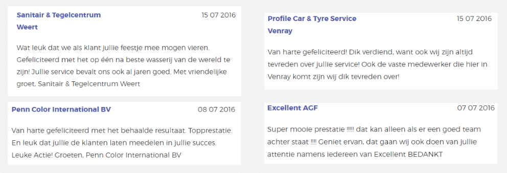 “Dankjewel. We zijn echt ontzettend trots op het feit dat we tot één van de beste wasserijen van de wereld behoren. Toen we met deze titel werden verrast, dachten we direct: dit moeten we niet onopgemerkt voorbij laten gaan. Na de nodige interne aandacht, werd het tijd om ook onze klanten bij ons feestje te betrekken.”