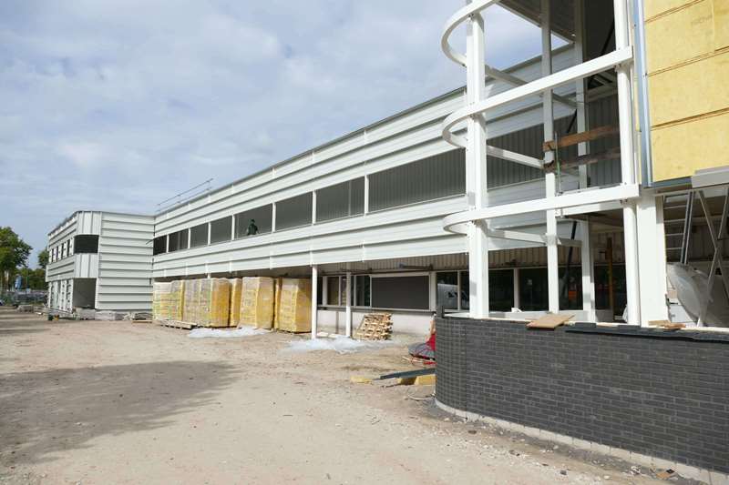 Inmiddels zijn we negen maanden verder en blijven we ons verbazen over de voortgang en uitstraling van het nieuwe gebouw. Waar voorheen vooral aan de buitenkant werd gewerkt, krijgt nu ook de binnenkant steeds meer vorm. Afgelopen week is zelfs de eerste grote machine geleverd: een wasbuis voor onze nieuwe high care ruimte.