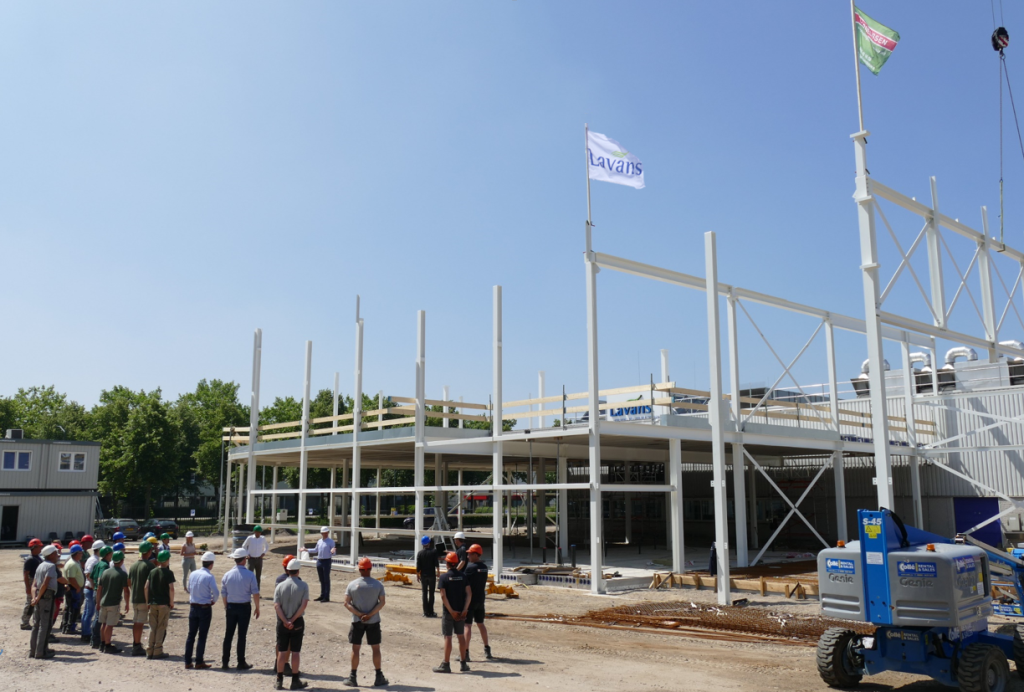 Vandaag (woensdag 6 juni) vond er een feestelijk moment plaats op de zonnige bouwplaats van Lavans. Na in januari 2018 gestart te zijn met de voorbereidingen en aansluitend de nodige bouwactiviteiten kon met trots de vlag in top vanwege het bereiken van het hoogste punt van ons nieuwbouwproject.