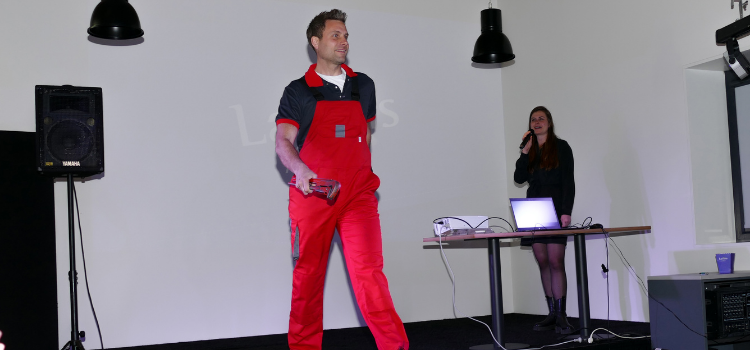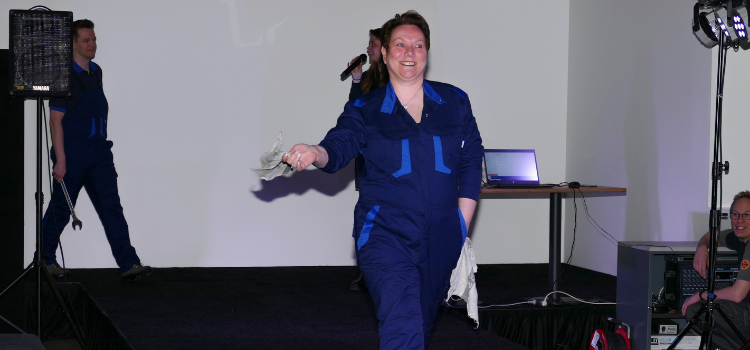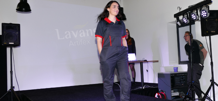 Speciaal voor de lancering werd de kantine van Lavans uitgerust met een catwalk waarop de nieuwe kledingcollectie intern werd gepresenteerd. De modellen? Uiteraard onze trotse collega’s zelf.