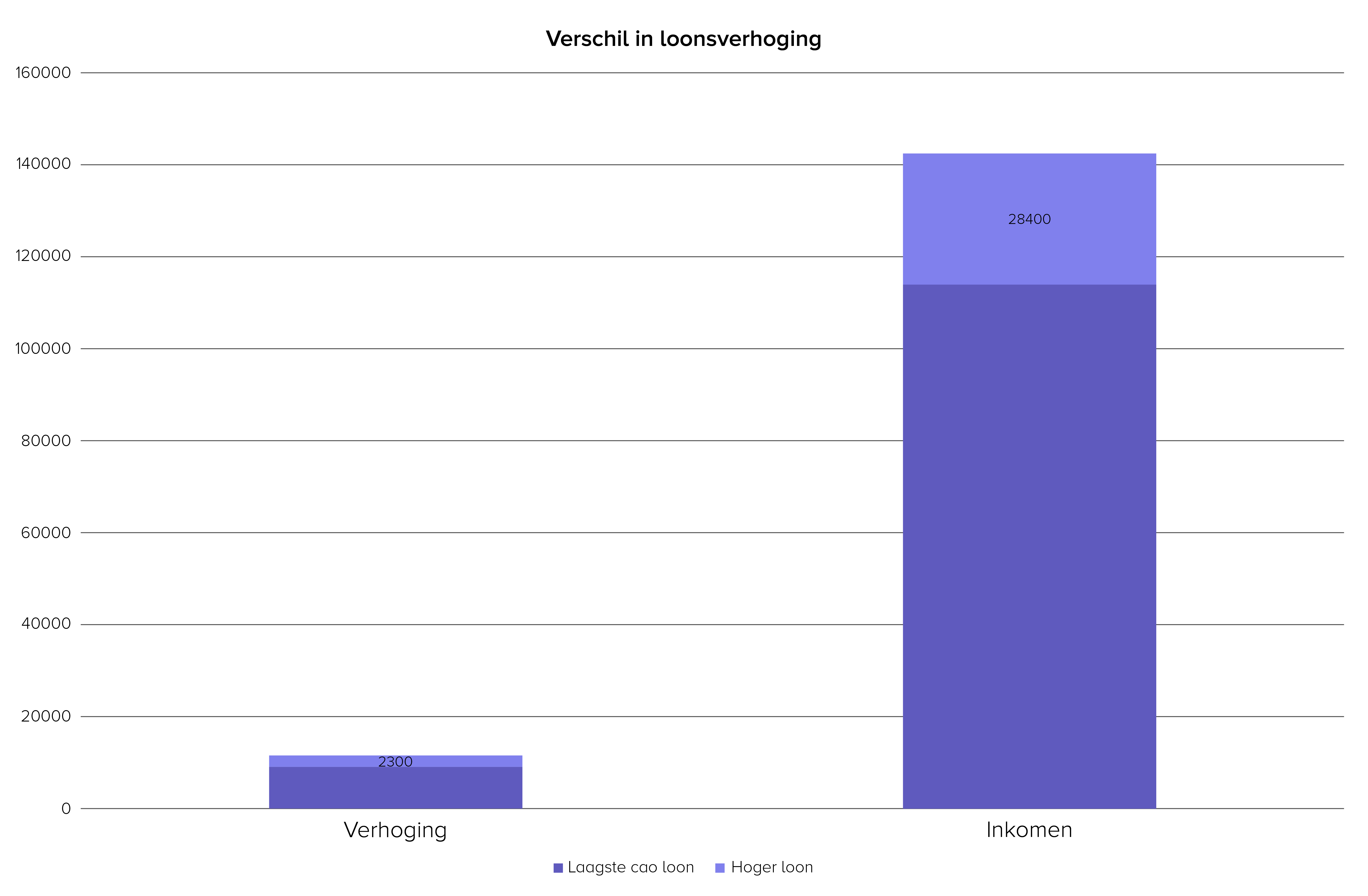Afbeelding: het verschil van loonsverhoging op basis van procenten.