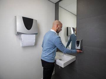 Tim Koppens, sanitair-expert Lavans legt uit: “Geen één bedrijf is het zelfde én daarmee het sanitair verbruik ook niet. Om die reden kan onze dienstverlening niet in hokjes verdeeld worden. Service is pas service, als deze is afgestemd op het bedrijf. Voorheen ontvingen klanten (veel) te veel of (veel) te weinig toiletpapier of zeep. Nu blijven we net zo lang ‘fine tunen’, tot dat onze dienstverlening exact aansluit bij het verbruik van de klant en deze dus precies genoeg heeft.”